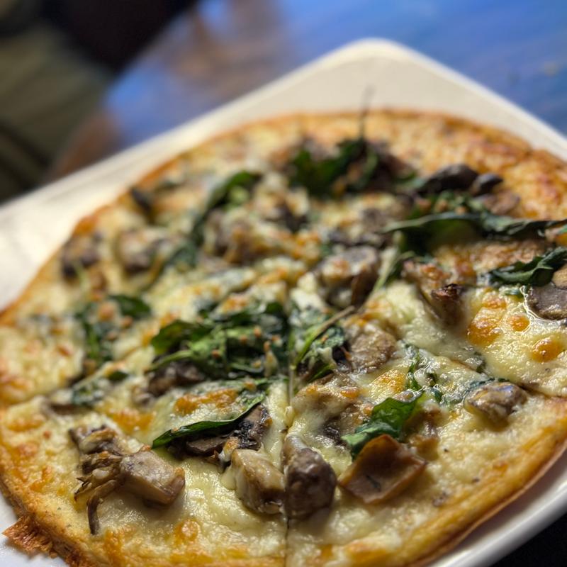 Crispy artisan flat bread topped with a medley of roasted seasonal mushrooms, fresh spinach, and whole milk mozzarella.