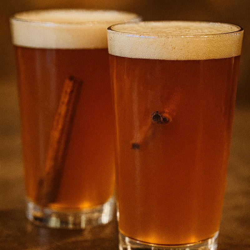 A splash of Buffalo Trace over 2 cinnamon sticks and apple cider, topped with a seasonal ale