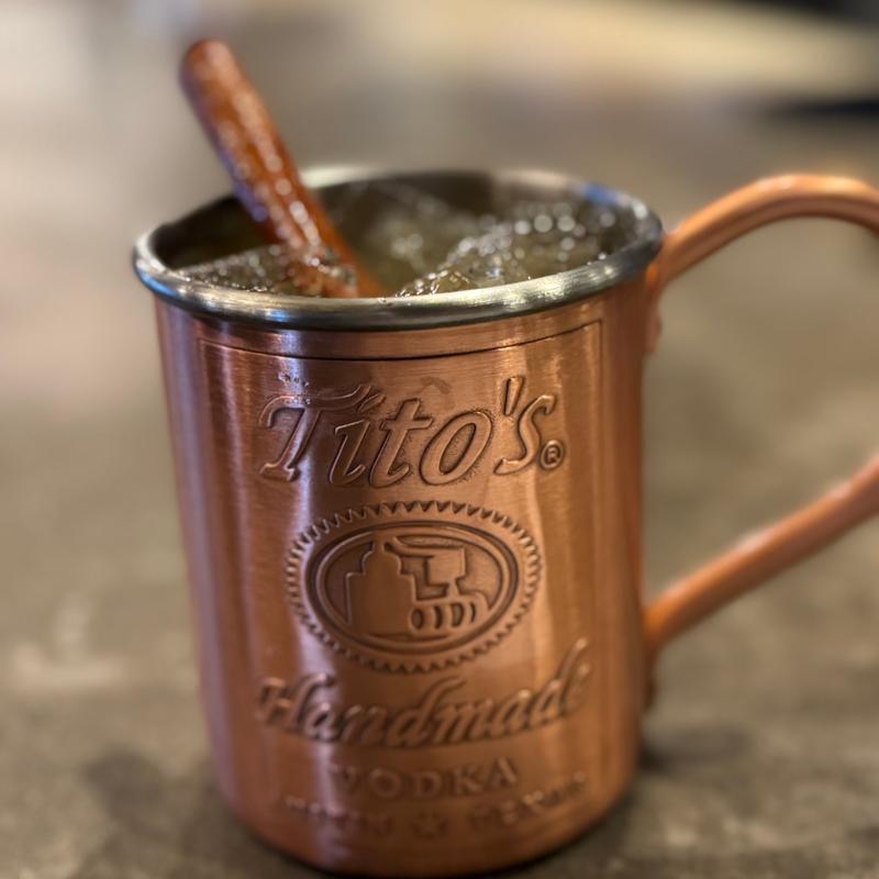 Tito's Vodka muddled with fresh limes and apple cider. Topped with Cock & Bull Ginger Beer, Garnished with a cinnamon stick